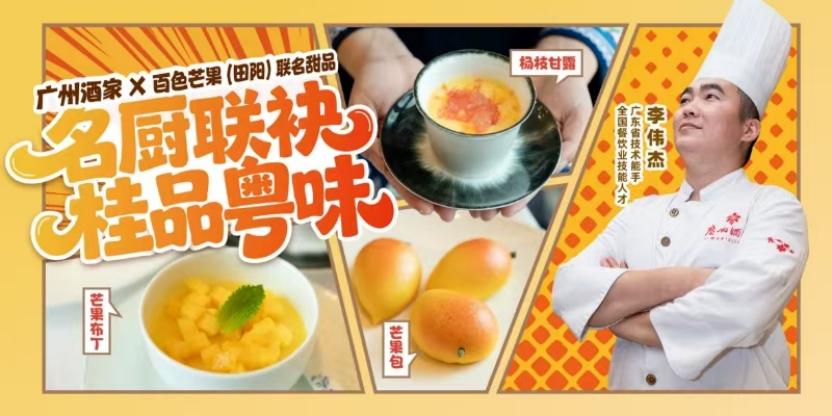 跨界合作打通新渠道成为“媒体+”牵线的新亮点。借助“走出去”产销活动平台,田阳芒果联合湾区知名餐饮品牌广州酒家打造“田阳芒果×广州酒家”美食甜品,通过“媒体+品牌合伙人”突破了传统农产品展销的单一模式。